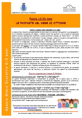 Sono aperte le iscrizioni per lo Spazio Gioco Incontro 0-3 anni del Comune di San Paolo d'Argon.